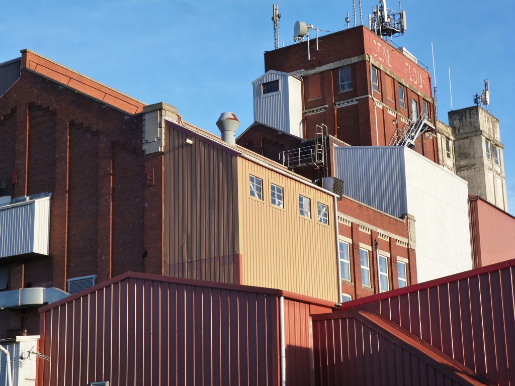 Which beautiful Abbey is a short distance away at the opposite end of the street from this beautiful industrial era configuration?